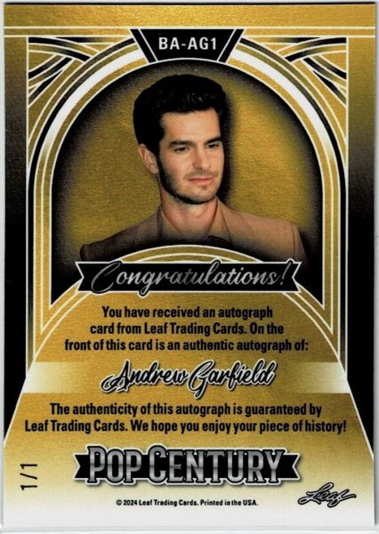 アンドリュー・ガーフィールド 24 LEAF POP CENTURY 1枚限定直筆サインカード スパイダーマン