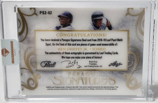 イチロー、ケン・グリフィーJR 20 Leaf 2枚限定直筆サインジャージカード