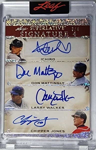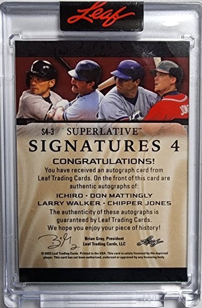 イチロー、ドン・マッティングリー、ラリー・ウォーカー、チッパー・ジョーンズ 23 Leaf Superlative 4枚限定直筆サインカード