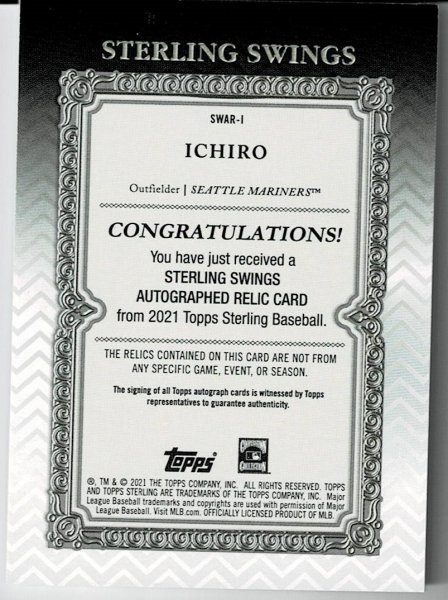 / イチロー 21 TOPPS STERLING 15枚限定直筆サインジャージカード