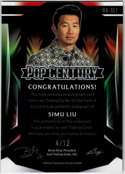 シム・リウ 23 LEAF POP CENTURY 12枚限定直筆サインカード MARVEL マーベル シャンチー