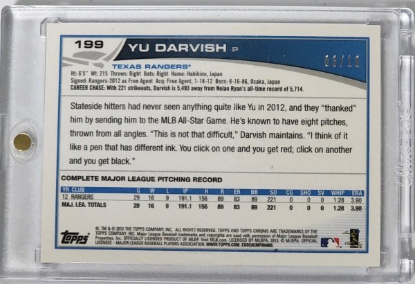 ダルビッシュ有 13 Topps Chrome 10枚限定直筆サインパッチカード quantity