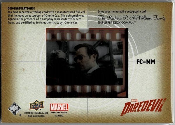 / デアデビル マット・マードック チャーリー・コックス 18 UD Marvel Daredevil 直筆サインフィルムカード