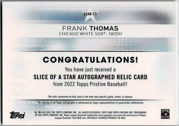 / フランク・トーマス 22 Topps Pristine 直筆サインジャージカード