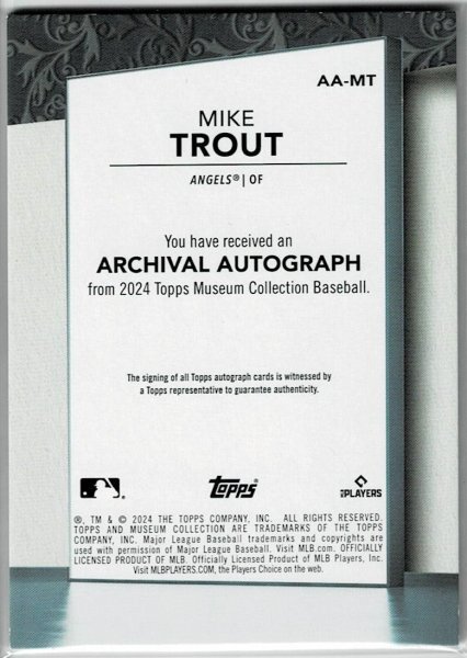 マイク・トラウト 24 Topps Museum Collection 299枚限定直筆サインカード