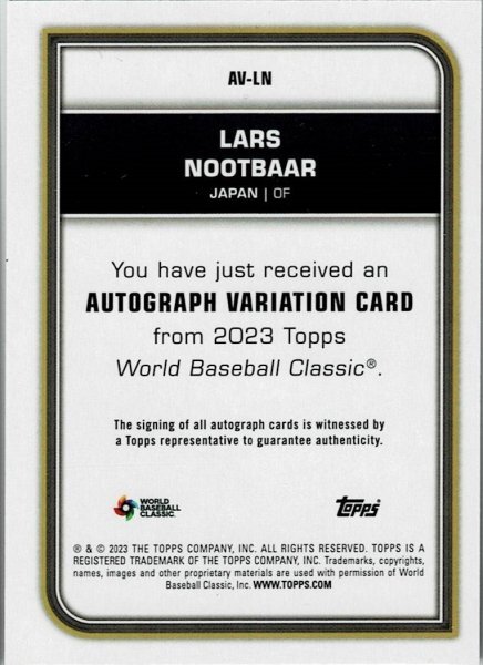 ラーズ・ヌートバー 23 Topps World Baseball Classic 直筆サインカード