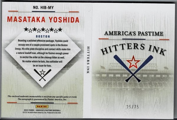 吉田正尚 23 National Treasures Booklet 75枚限定直筆サインジャージカード quantity