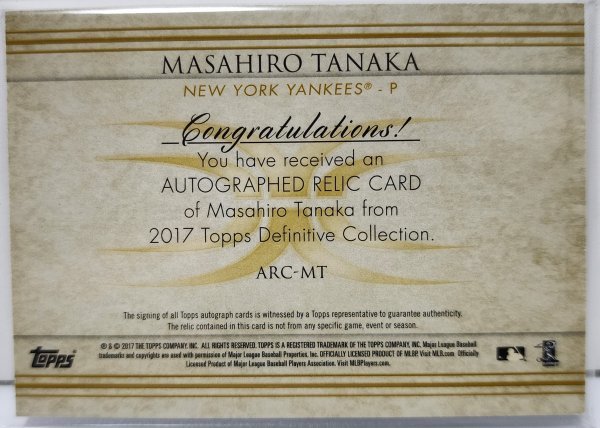 / 田中将大 17 Topps Definitive 5枚限定直筆サインパッチカード
